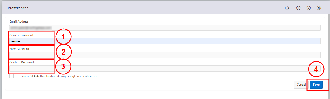 CAUTION - Changing your password once 2-Factor Authentication is enabled, will cause you to set up the 2-Factor Authentication again.
