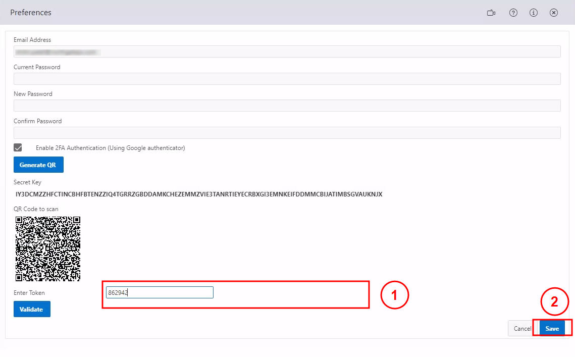 Tick the Enable 2FA Authenitication (Using Google Authenticator) box.